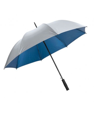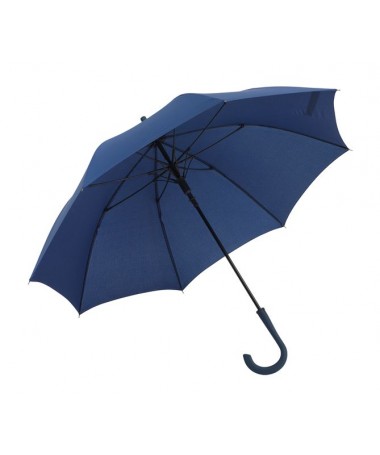 Personalized automatic classic umbrella : metal rib, fiberglass spokes, metal tips, rubberized curved handle with integrated opening button, polyester-pongee cover with special anti-water and dirt cover, strap with hook-and-loop closure