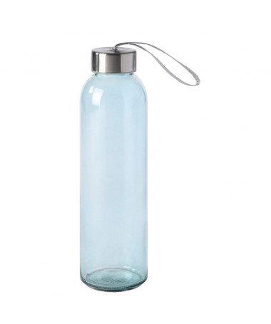 ECOFIT glass drinking bottle: stainless steel lid with screw cap, silicone sealing ring and wrist strap, filling volume approx. 500 ml, packed in a white box